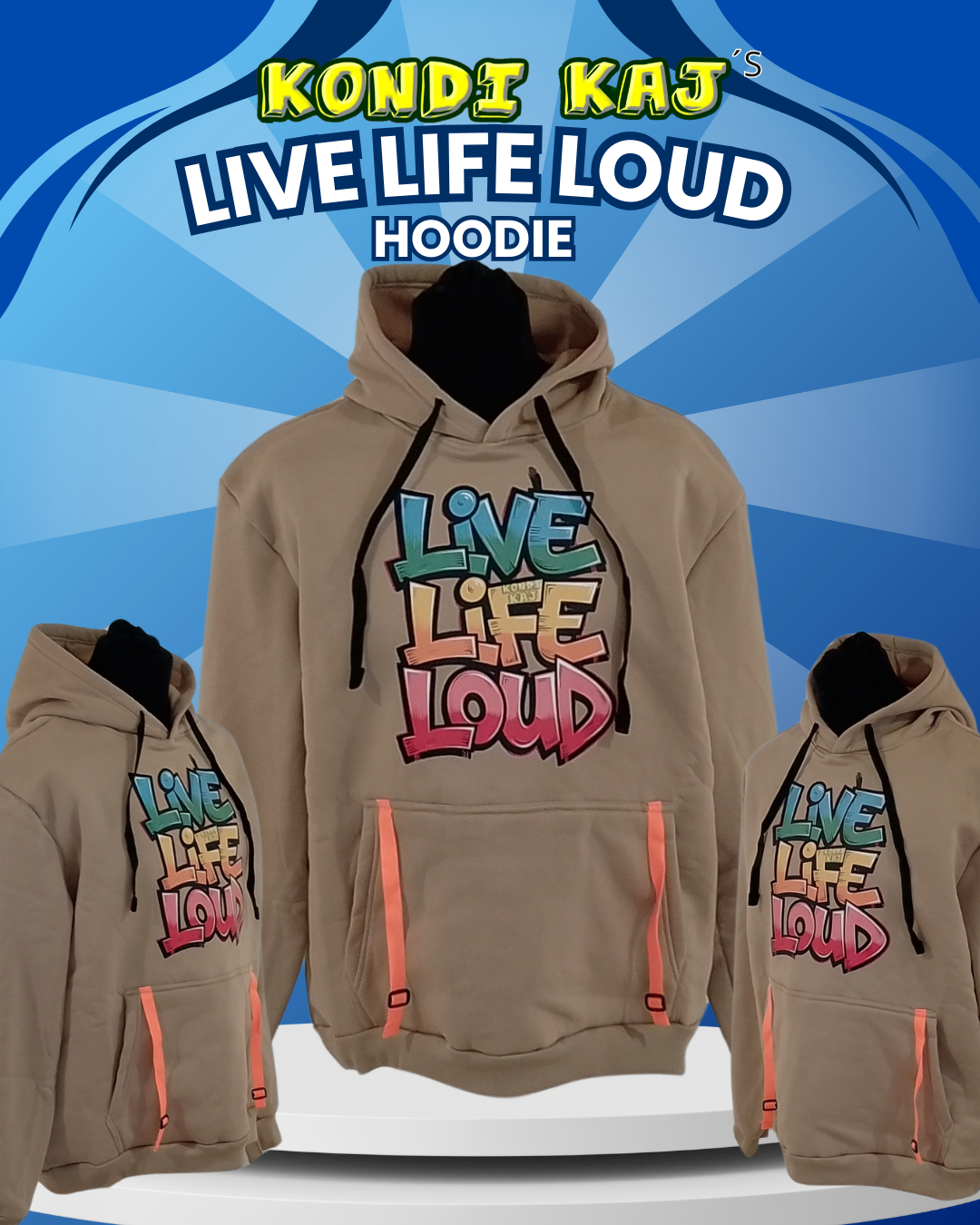 Med et råt graffiti-design og teksten “Live Life Loud” får du en hoodie, der siger alt uden at sige noget.